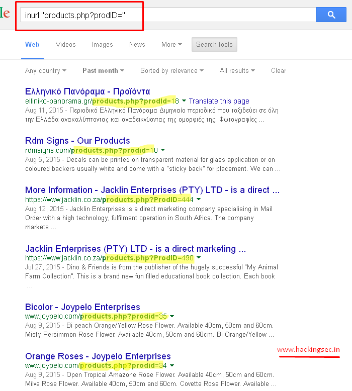 inurl:"products.php?prodID="This search will return websites affiliated with Google with "products.php?prodID=" within
